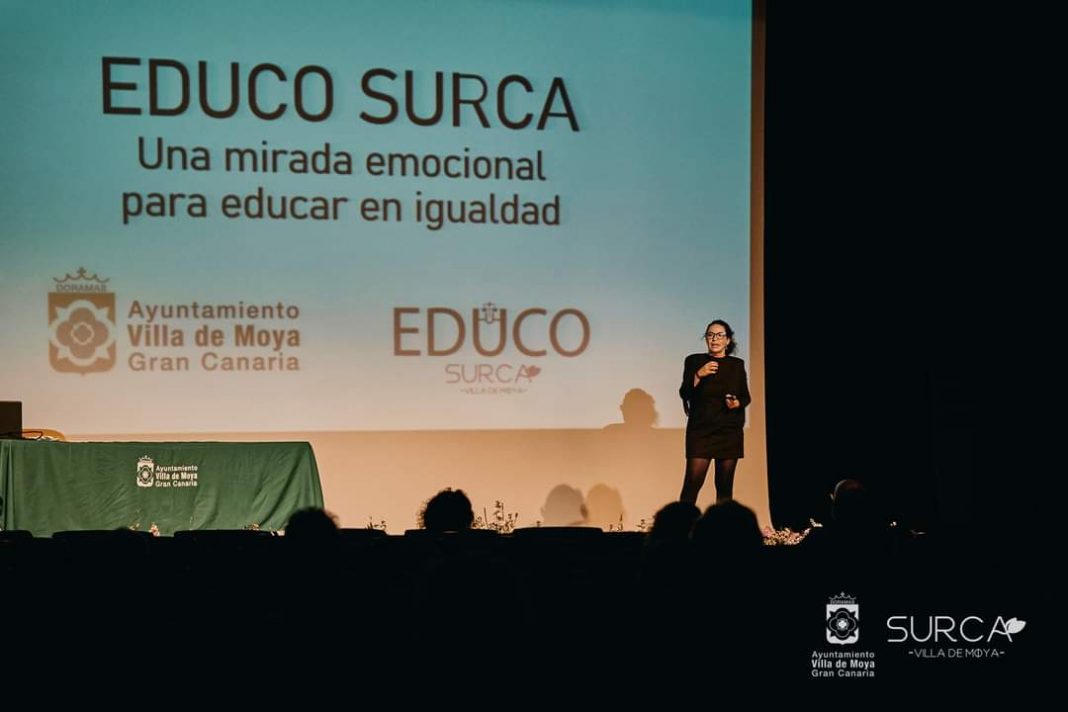 “EducoSurca, Villa de Moya” se dirige a la totalidad de la comunidad educativa del municipio: a niños, niñas, profesorado, profesionales no docentes de la escuela, a las familias (madres, padres, abuelas, tíos…), de tal manera que el mensaje lanzado se consolide al ser compartido por la comunidad. Abordamos tres ejes de conocimiento bien diferenciados, pero que en la práctica aparecen entrelazados e integrados: abordamos la (des)igualdad por razón de sexo/género y la coeducación, la visibilización de las mujeres rurales, su diversidad y su decisiva contribución a las comunidades que habitan, y finalmente, la educación emocional desde la perspectiva de la neurociencia afectiva y el desarrollo-entrenamiento de habilidades para la vida.